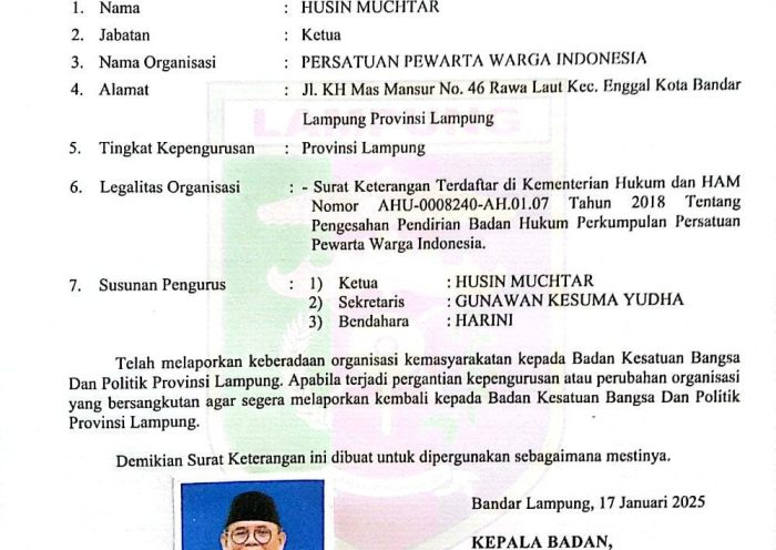 PPWI Lampung: Wadah Edukasi dan Pemberdayaan Lewat Jurnalistik Resmi Tercatat di Bakesbangpol