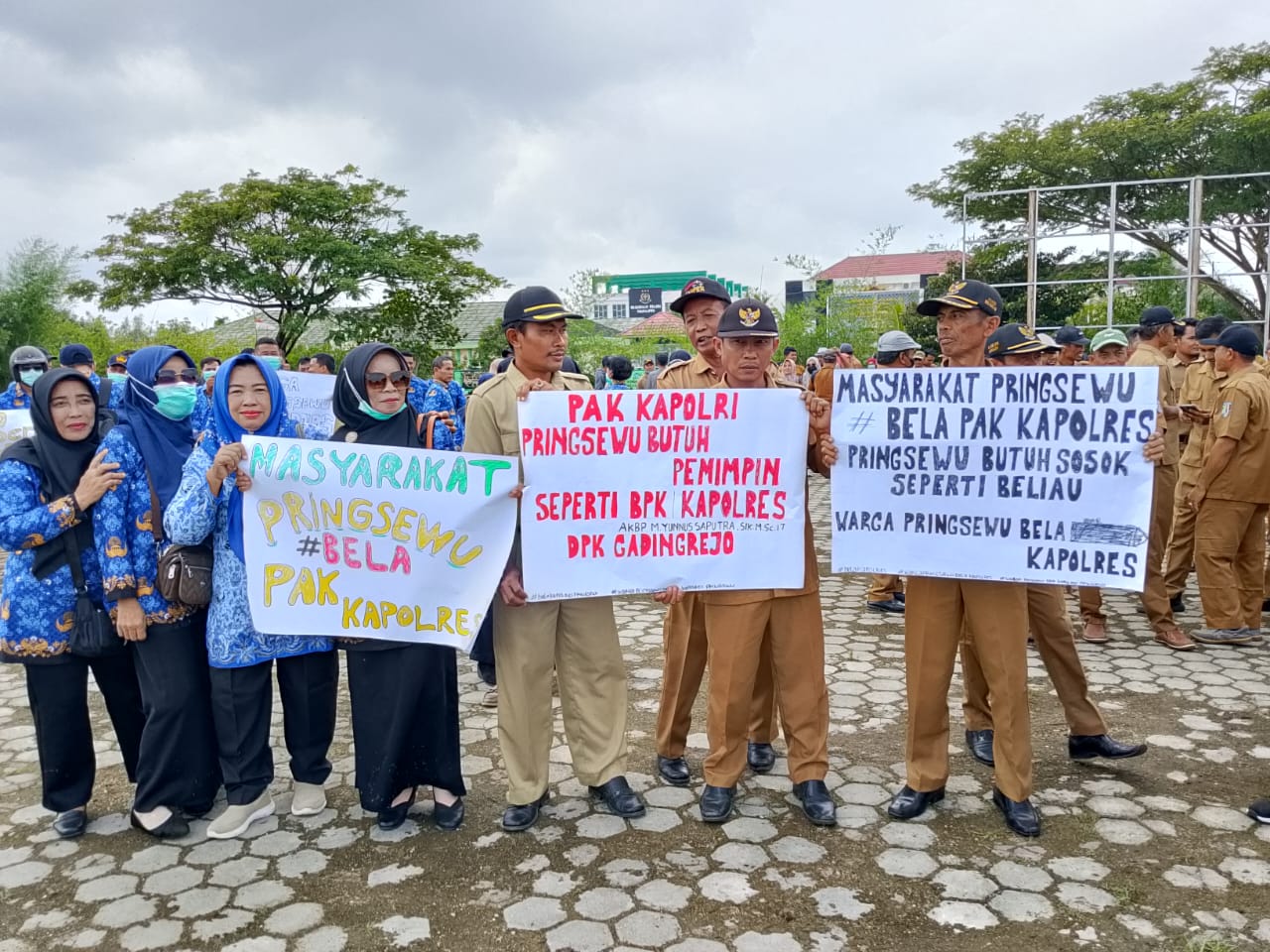 Dua Instansi dan APDESI pringsewu dalam Aksi Bela Kapolres ini meminta KAPOLRI untuk tetep menempatkan KAPOLRES M Yunnus Saputra menjadi KAPOLRES Pringsewu.
