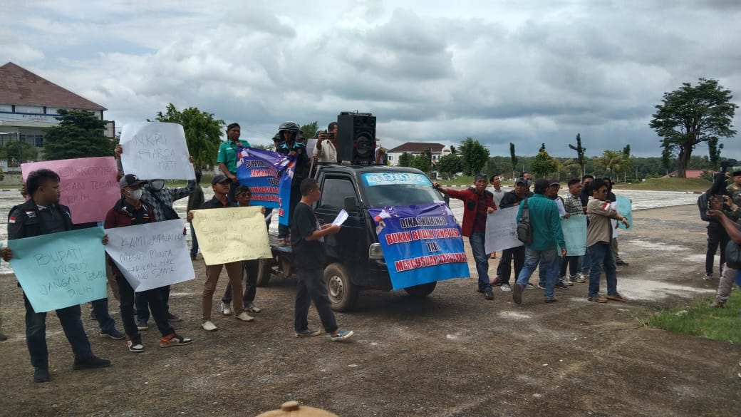 Ratusan Jurnalis yang Tergabung di Berbagai Organisasi Kewartawanan di Mesuji Gruduk Kantor Bupati Mesuji,
