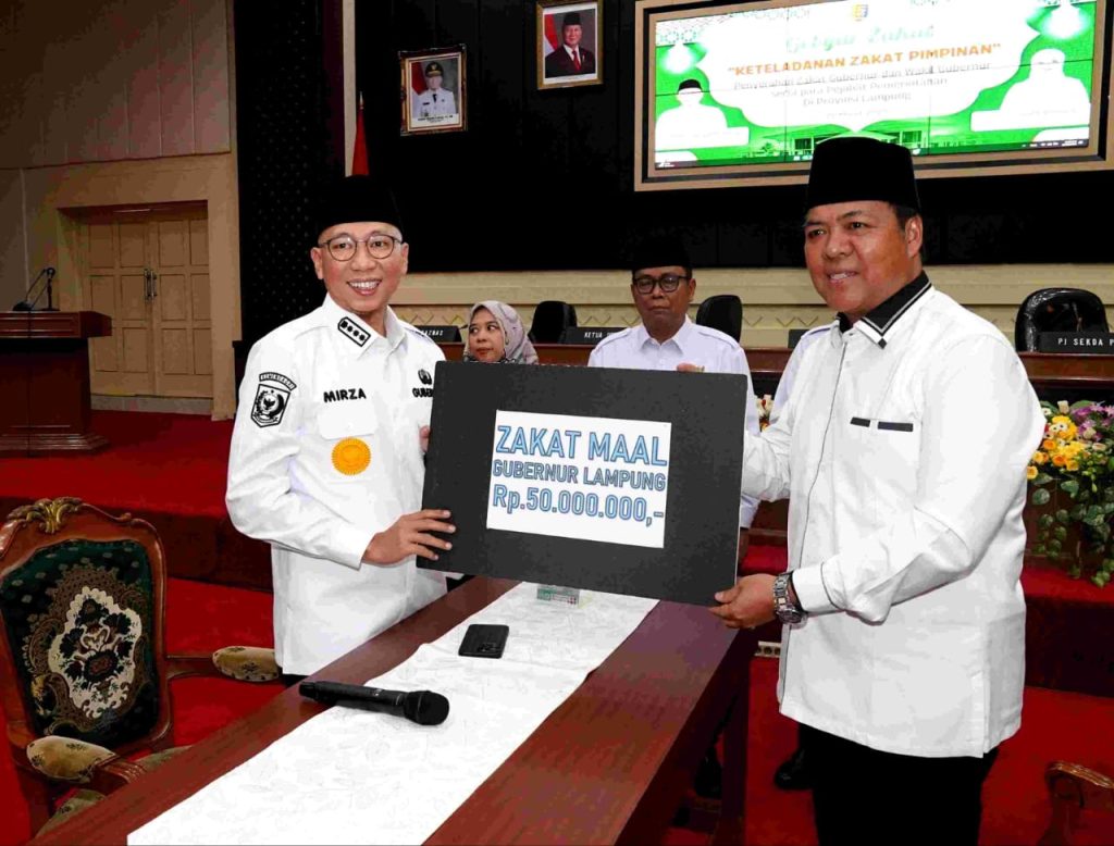 Pada kesempatan tersebut, selain menyerahkan Zakat Fitrah, Gubernur Mirza juga menyerahkan Zakat Mal sebesar Rp.50 juta kepada Baznas Lampung.