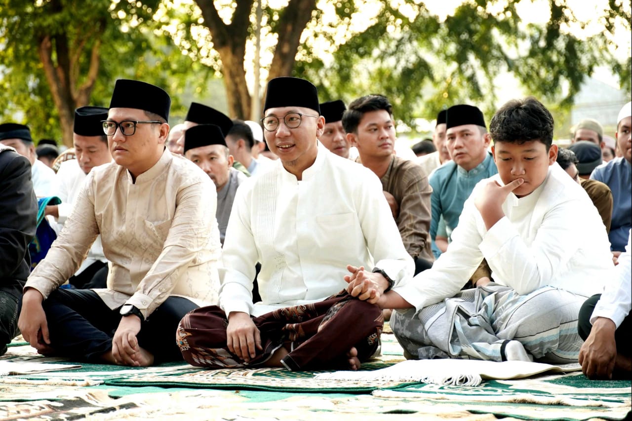 Gubernur Rahmat Mirzani Djausal bersama keluarga melaksanakan Salat Idul Adha 1446 H / Tahun 2025, di Lapangan Saburai, Enggal Bandar Lampung, Jumat (6/6/2025).