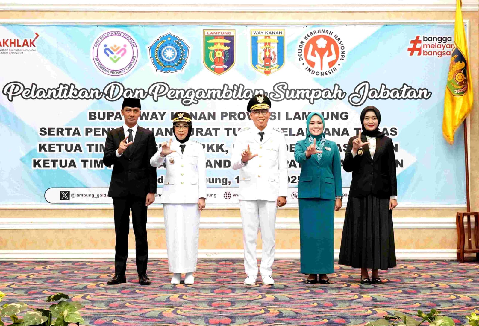 Sebagai bagian dari dukungan terhadap penyelenggaraan pemerintahan dan pemberdayaan masyarakat, turut diserahkan surat tugas kepada Plt. Ketua Tim Penggerak PKK, Plt. Ketua Dekranasda, dan Plt. Ketua Tim Pembina Posyandu Kabupaten Way Kanan. Gubernur berharap pelaksana tugas tersebut dapat segera menjalankan peran dalam mendukung program kesehatan keluarga, pemberdayaan masyarakat, serta kemajuan ekonomi kreatif di Kabupaten Way Kanan. (Dinas Kominfotik Provinsi Lampung).