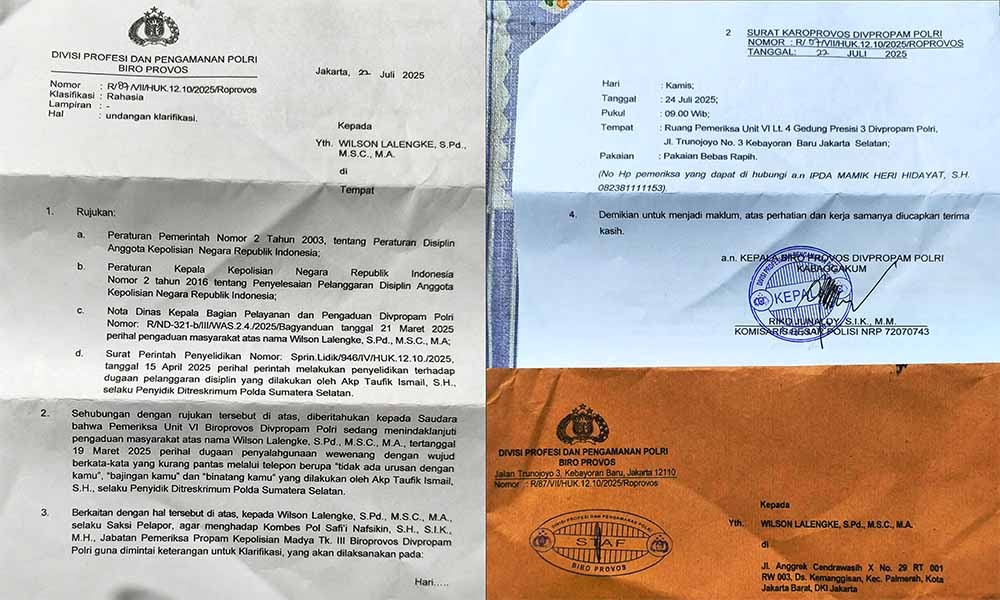Ketua Umum Persatuan Pewarta Warga Indonesia (PPWI), Wilson Lalengke, S.Pd., M.Sc., M.A., akan memenuhi undangan resmi dari Divisi Profesi dan Pengamanan (Divpropam) Polri guna memberikan keterangan atas laporan dugaan pelanggaran etika yang dilakukan oleh oknum anggota Kepolisian Daerah Sumatera Selatan (Polda Sumsel), AKP Taufik Ismail. Laporan tersebut sebelumnya telah diajukan melalui kanal pengaduan masyarakat (Lapdumas) di Divpropam Polri.