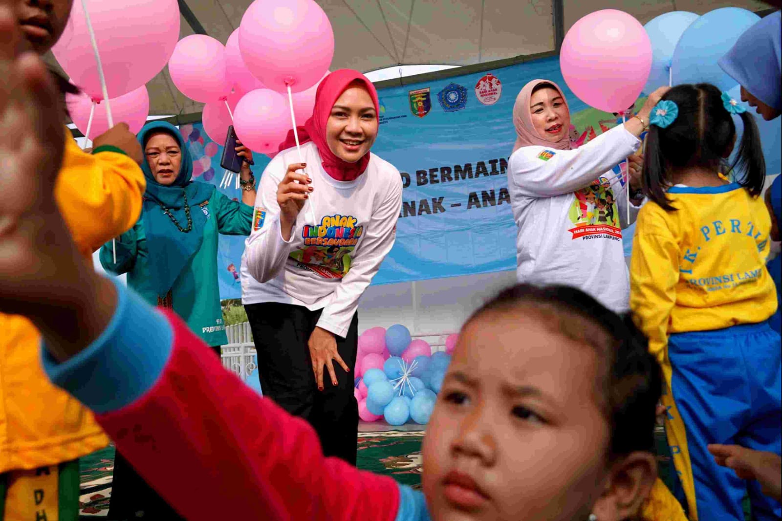 Dalam kesempatan yang sama, Bunda PAUD Provinsi Lampung, Purnama Wulan Sari Mirza memberikan semangat dan dorongan kepada seluruh anak-anak yang hadir. Ia juga menegaskan pentingnya keluarga, guru, dan masyarakat dalam memelihara tumbuh kembang anak dengan kasih sayang dan perhatian.