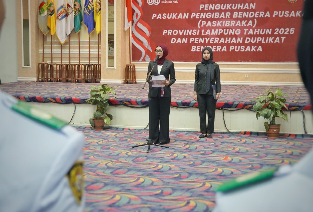 Wakil Gubernur Lampung, Jihan Nurlela mengukuhkan 33 anggota Pasukan Pengibar Bendera Pusaka (Paskibraka) Tingkat Provinsi Lampung Tahun 2025, bertempat di Balai Keratun Lt III, Komplek Kantor Gubernur, Bandar Lampung, Jum’at (15/08/2025).