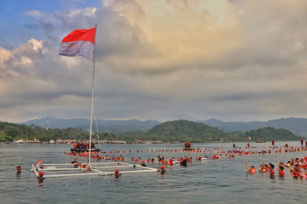 Upacara tersebut diikuti ratusan peserta dari Komunitas Perenang Antar Pulau-Lampung yang membentuk formasi angka “80” di tengah laut sebagai simbol usia kemerdekaan. Kegiatan ini juga dihadiri Wakil Gubernur Jihan Nurlela, Sekdaprov Marindo Kurniawan, serta Danrem 043/Gatam Brigjen TNI Haryantana.