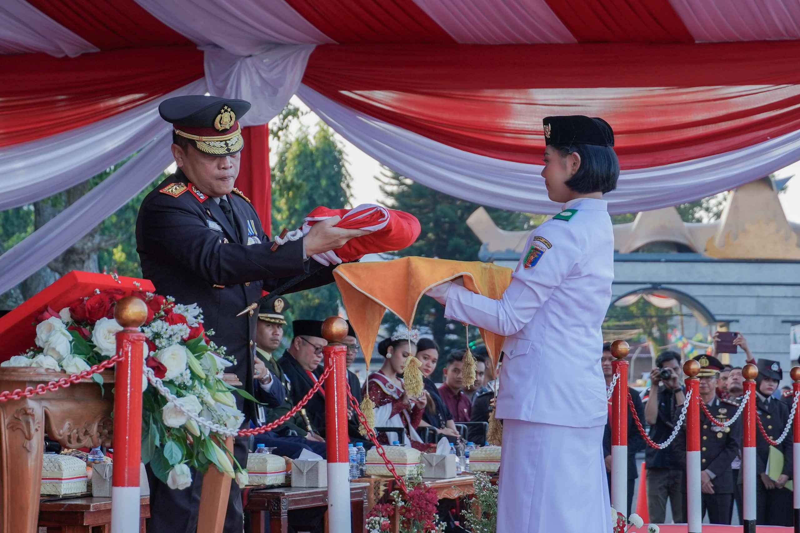 - Adapun peserta upacara terdiri dari 6 batalyon parade upacara yang terdiri dari jajaran TNI/POLRI, ASN dan siswa/siswi SMA/SMK. Acara penurunan dimeriahkan dengan penampilan Marching Band binaan Provinsi Lampung, Gita Praja Saburai. (Dinas Kominfotik Provinsi Lampung).