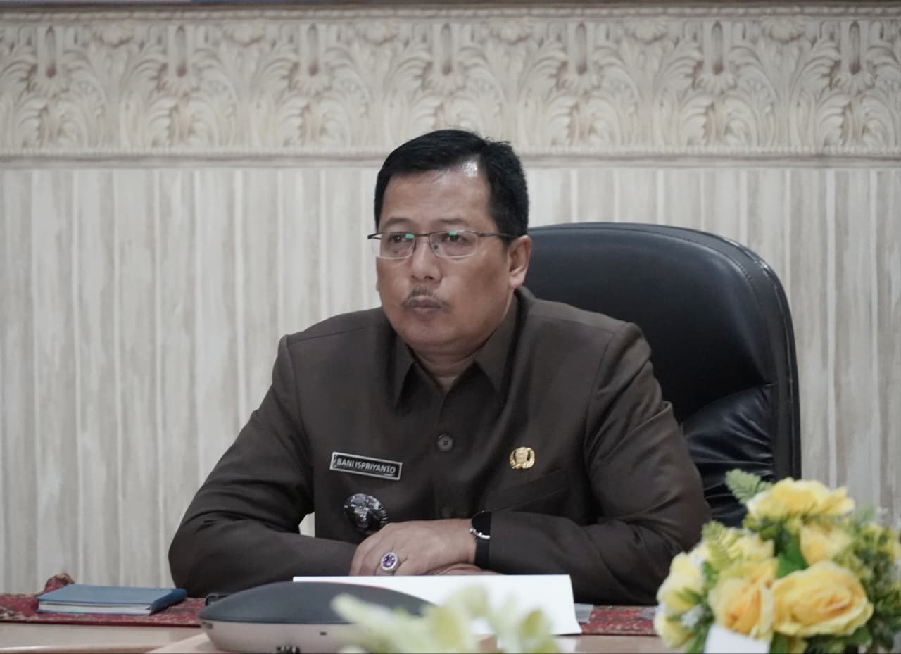 Staf Ahli Bidang Perekonomian dan Pembangunan Provinsi Lampung, Bani Ispriyanto, mengikuti Rapat Koordinasi Pengendalian Inflasi Daerah secara virtual di Ruang Command Center, Senin (19/8/2025).