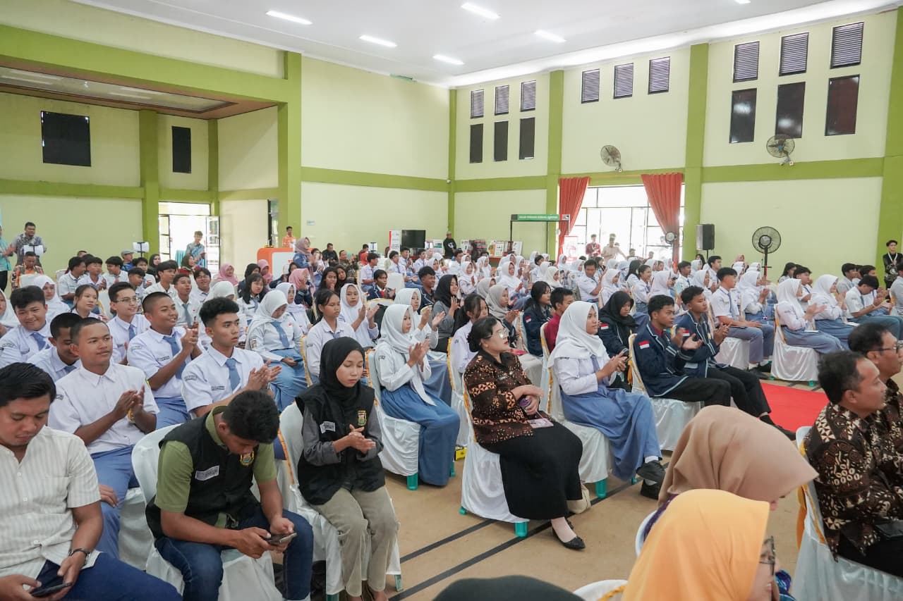 Wakil Gubernur Jihan Nurlela melaunching Program Bank Sampah Sekolah yang digelar di Gedung Serba Guna (GSG) SMAN 2 Bandar Lampung, Kamis (21/8/2025).