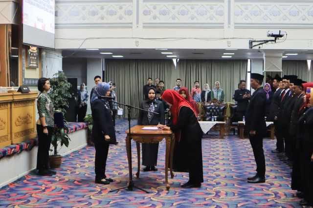 Gubernur Lampung diwakili oleh Inspektur Provinsi Lampung, Bayana melantik dan mengambil sumpah/janji jabatan pejabat administrator, pejabat pengawas, dan pejabat fungsional di lingkungan pemerintah Provinsi Lampung bertempat di Balai Keratun Lt III, Komplek Kantor Gubernur, Bandar Lampung, Jumat (10/10/2025).