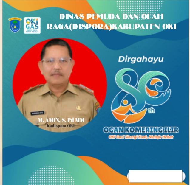 OKI- Kepala Dinas Pemuda dan Olahraga Kabupaten OKI, M, Amin, S,Pd, MM, mengucapkan Dirgahayu ke 80 Kabupaten Ogan Komering Ilir (OKI). OKI Gas! Sinergi, Kuat, Melaju, Hebat
