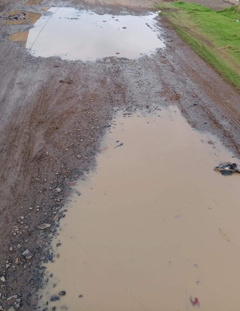 Setiap Hari , Apalagi dimusim hujan begini , kami melalui Jalan yang berlobang serta licin . Dan Sebagian besar berlokasi didalam kampung sampai ke Tugu selamat Datang kampung Srimenanti. Dan terlihat jelas kondisinya sangat parah, bahkan bandan jalan yang Hancur sangat berpotensi terjadinya kecelakaan.Imbuh Fikri.