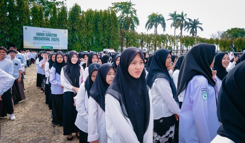 Bandar Lampung Gubernur Lampung, Rahmat Mirzani Djausal menjadi inspektur upacara pada Peringatan Hari Santri Nasional Tahun 2025 yang mengusung tema “Mengawal Indonesia Merdeka Menuju Peradaban…