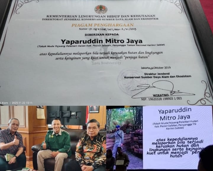 Penghargaan ini merupakan bentuk apresiasi atas upaya dan kontribusi aktivis dalam menjaga kelestarian hutan dan lingkungan hidup di wilayah Pessel penyangga Taman Nasional (TN) Kerinci Seblat.