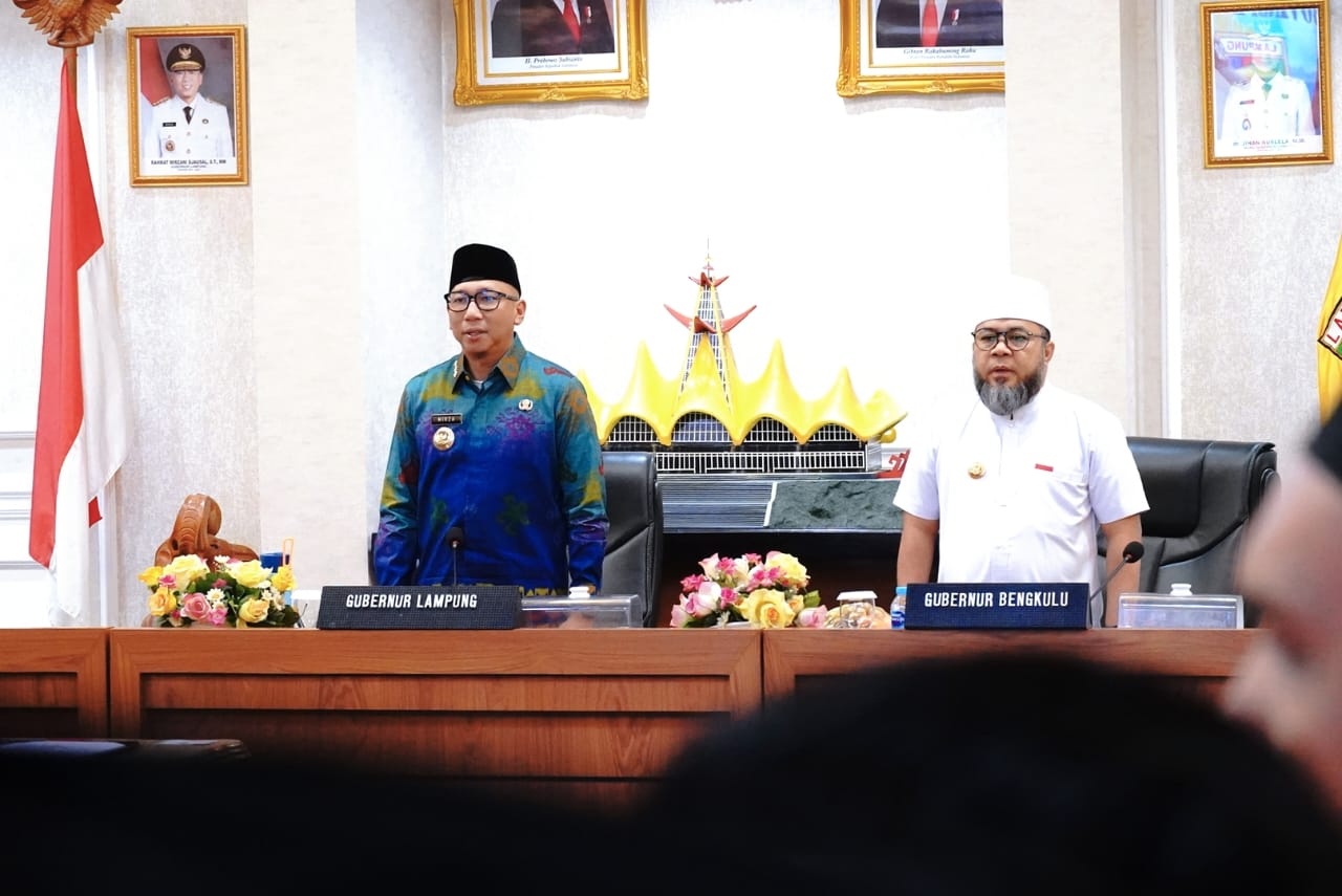 Penandatanganan dilakukan oleh Gubernur Rahmat Mirzani Djausal bersama Gubernur Bengkulu Helmi Hasan. Penandatanganan berlangsung di Ruang Rapat Utama Kantor Gubernur Lampung, Kamis (27/11/2025).
