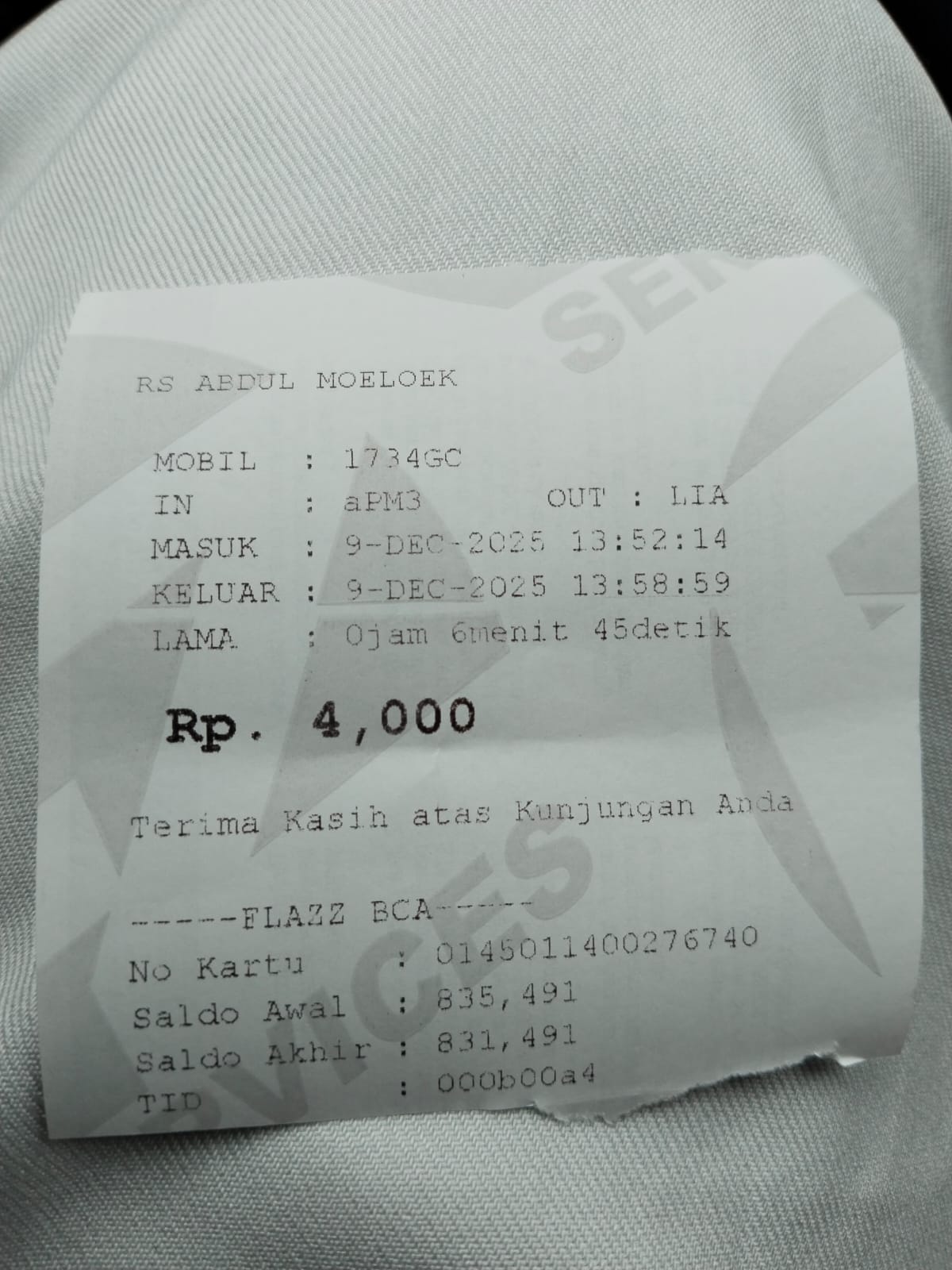 Pengunjung Rumah Sakit Umum Daerah (RSUD) Abdul Moeloek, Bandar Lampung, mengeluhkan tarif parkir yang dinilai tidak wajar. Keluhan ini mencuat karena pengunjung dikenakan biaya Rp4.000 meskipun belum 10 menit berada di area parkir, bahkan hanya berputar-putar mencari tempat kosong. Selasa, (91/12/2025).