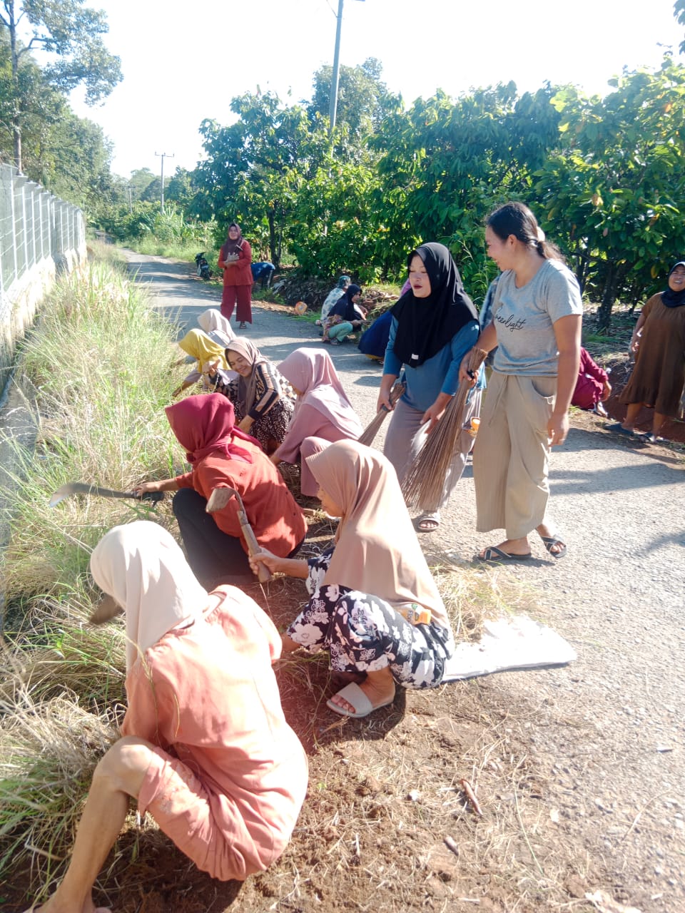 Warga secara bersama-sama membersihkan rumput liar di sepanjang jalan desa. Kegiatan dipimpin oleh Kepala Dusun Cikoak dan dilaksanakan secara swadaya serta penuh kebersamaan.
