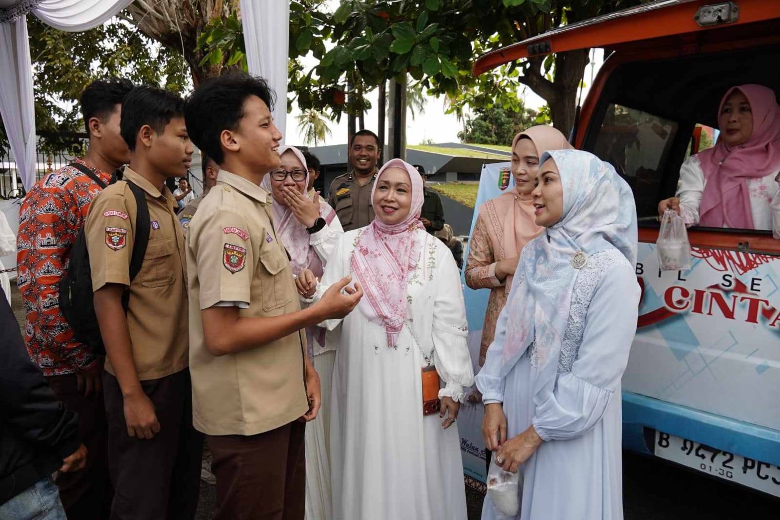 Paket tersebut dibagikan langsung oleh Ketua Tim Penggerak PKK Provinsi Lampung, Purnama Wulan Sari, bersama Ketua DWP Provinsi Lampung Agnesia Bulan Marindo kepada para pengendara, pejalan kaki, dan masyarakat yang melintas di area tersebut.