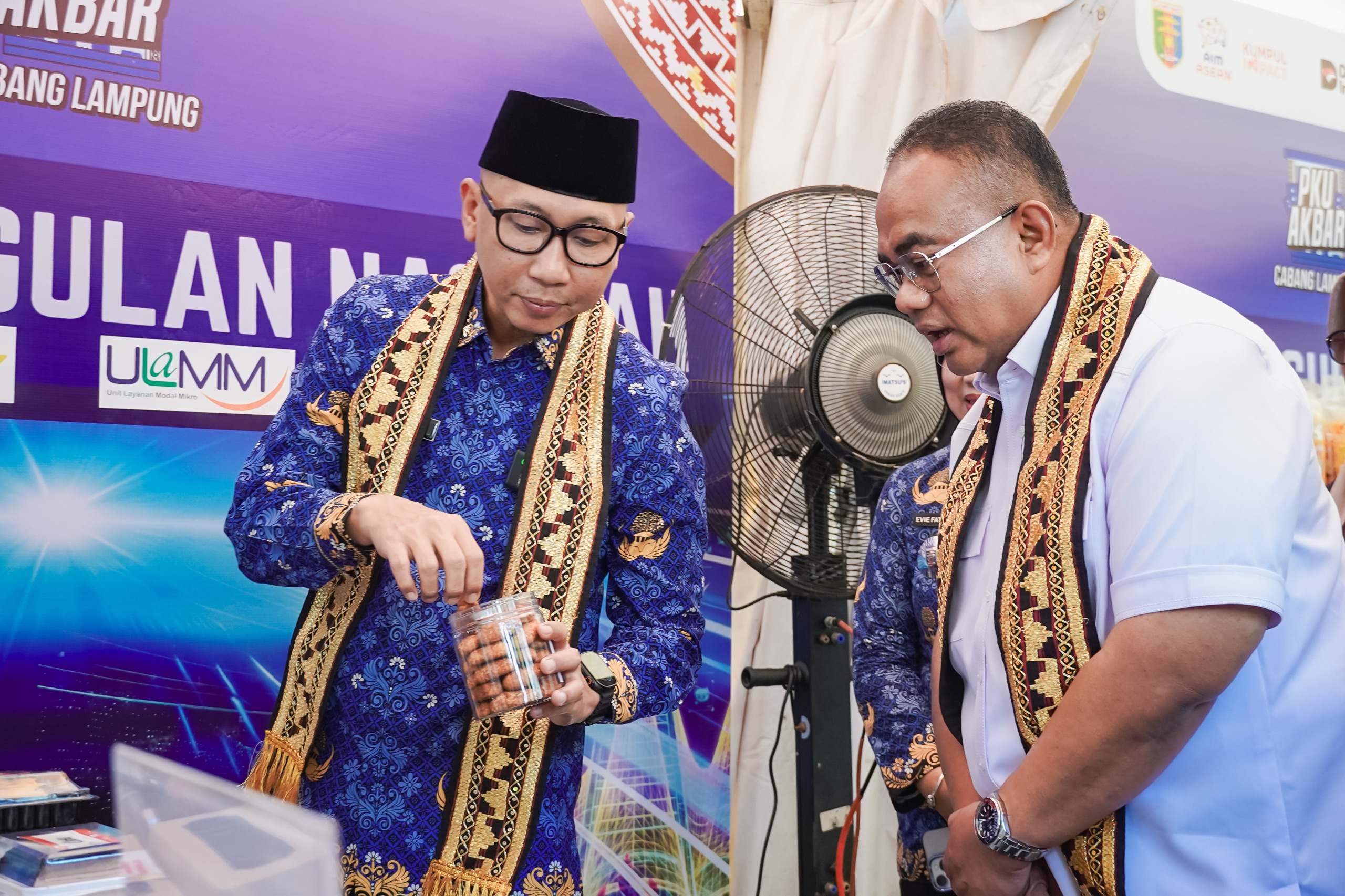 Ia berkeliling mengunjungi sekitar 18 stan pameran yang didominasi produk olahan makanan dan kerajinan khas Lampung. Mulai dari stik ikan Simuley, Banana Chips Melted Nthree, keripik pisang Asya, basreng Bunda Nisa, hingga brownies buatan Ibu Rohma, tak luput dari perhatian gubernur.