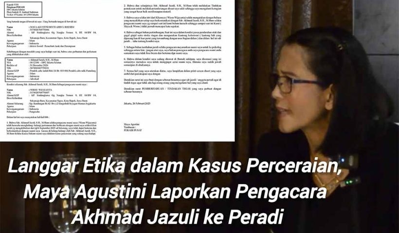 Jakarta – Seorang wanita pemerhati anak dan sosial, Maya Agustini Binti Abdul Rochim, melaporkan advokat bernama Akhmad Jazuli, S.H., M.H., ke Perhimpunan Advokat Indonesia (PERADI)…