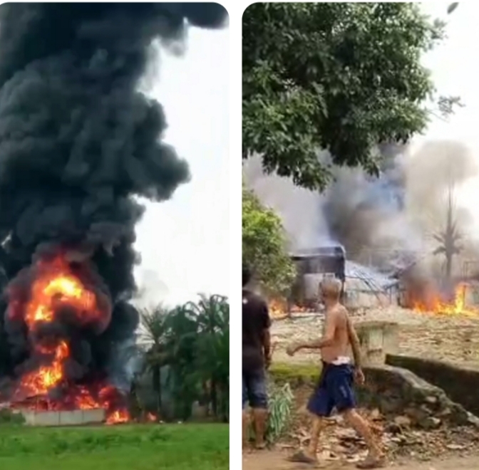 Di Duga Menjadi Lokasi Oplosan dan Penimbunan BBM,Rumah Salah Satu Warga Kamp.Bumiraharjo, Kec.Bumiratunuban,Kab.Lam-Teng Hangus di Lahab Si Jago Merah