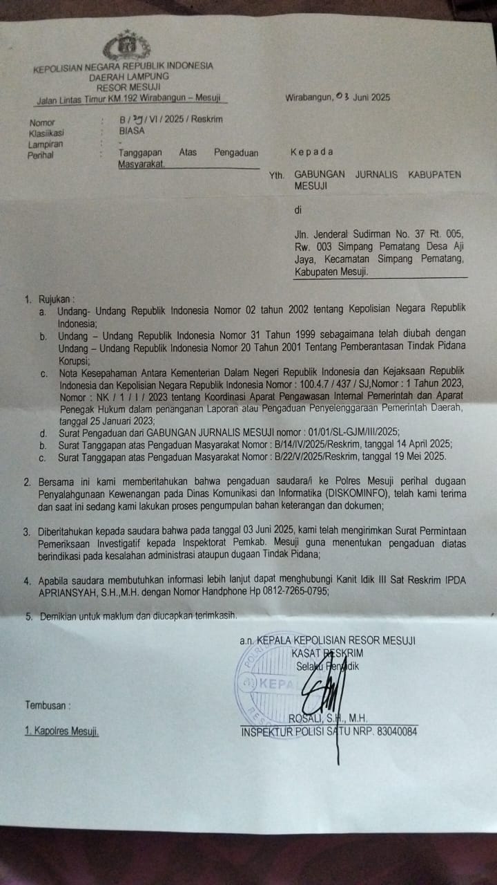 View More Polres Usut Laporan Jurnalis, Ada Apa dengan Diskominfo Mesuji