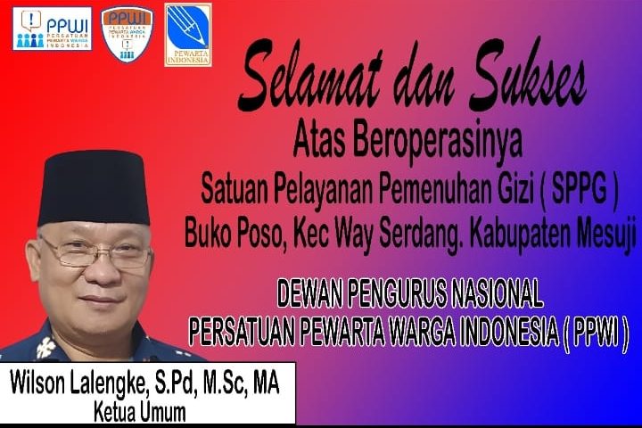 Mesuji Ketua Umum DPN PPWI Wilson Lalengke, S.pd, M, sc mengucapkan selamat atas launching nya Dapur SPPG yang berada di Desa Buko Poso, Kecamatan Way…