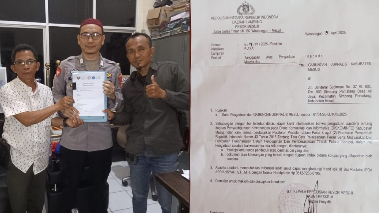 Mesuji infoberitakorupsi.my.id Wartawan Mesuji Bergerak (WMB) menerima surat resmi dari Kepolisian Resor (Polres) Mesuji melalui Satuan Reserse Kriminal (Satreskrim), yang menyatakan bahwa laporan dugaan penyalahgunaan…